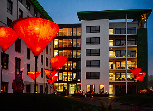 In Laatzen nahe Hannover bietet dieses moderne Fachpflegeheim rund 190 Menschen mit chronischen Behinderungen ein komfortables, familiäres Zuhause. Die exklusiven Einzelzimmer mit geräumigen Bädern lassen Raum für individuelle Gestaltung. Durch die ideale Lage – nahe dem Leine-Center, mit Grünflächen wie dem Park der Sinne und guter Anbindung an öffentliche Verkehrsmittel – vereint das Heim urbanes Leben und Natur. Neben einem persönlichen Tagesablauf, ergotherapeutischer Begleitung und medizinischer Betreuung legt das Haus besonderen Wert auf eine gesunde, frisch zubereitete Ernährung.
